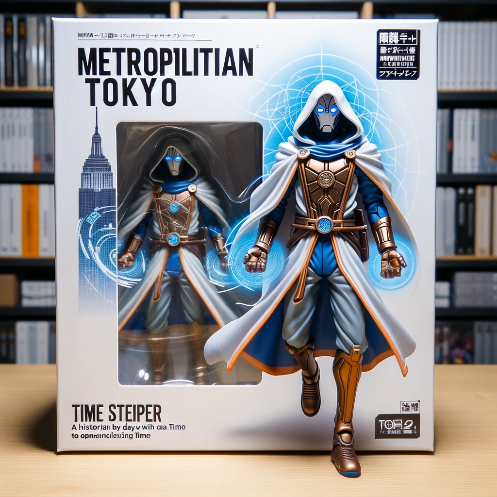 プロフィール:日中は歴史学者で、夜は時間を操る能力を持つヒーローとして活動する。古代と未来の要素が融合した衣装が特徴的だね。