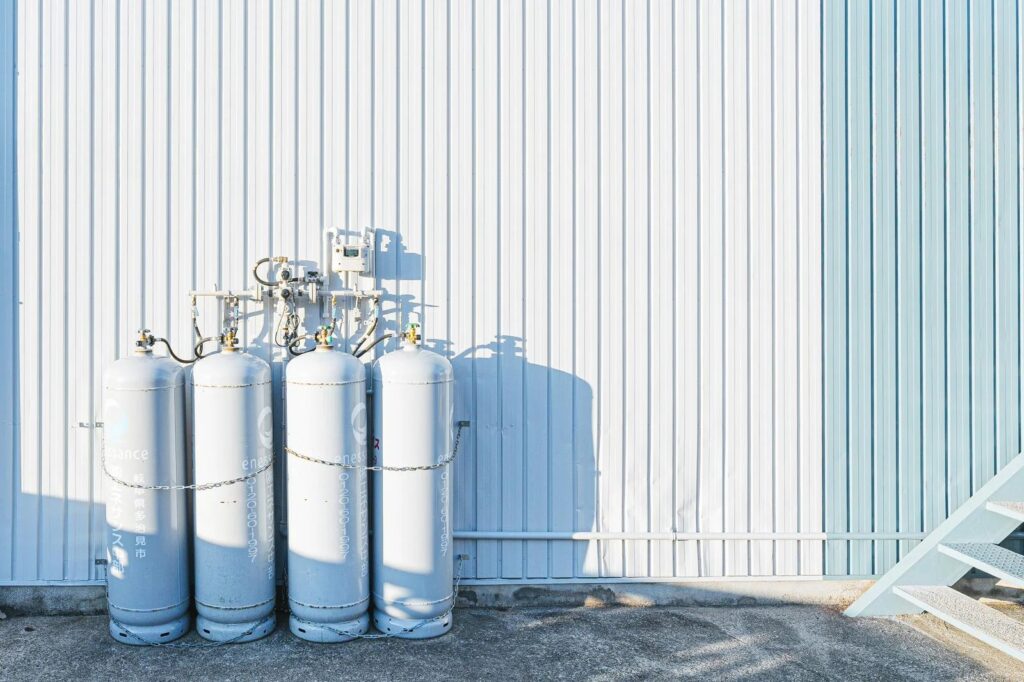 プロパンガス(LPガス)は、液化石油ガスをボンベあるいはタンクを通じて各家庭まで運ぶ方式で、導管による供給網がない場所でも使えるという強みがあります。